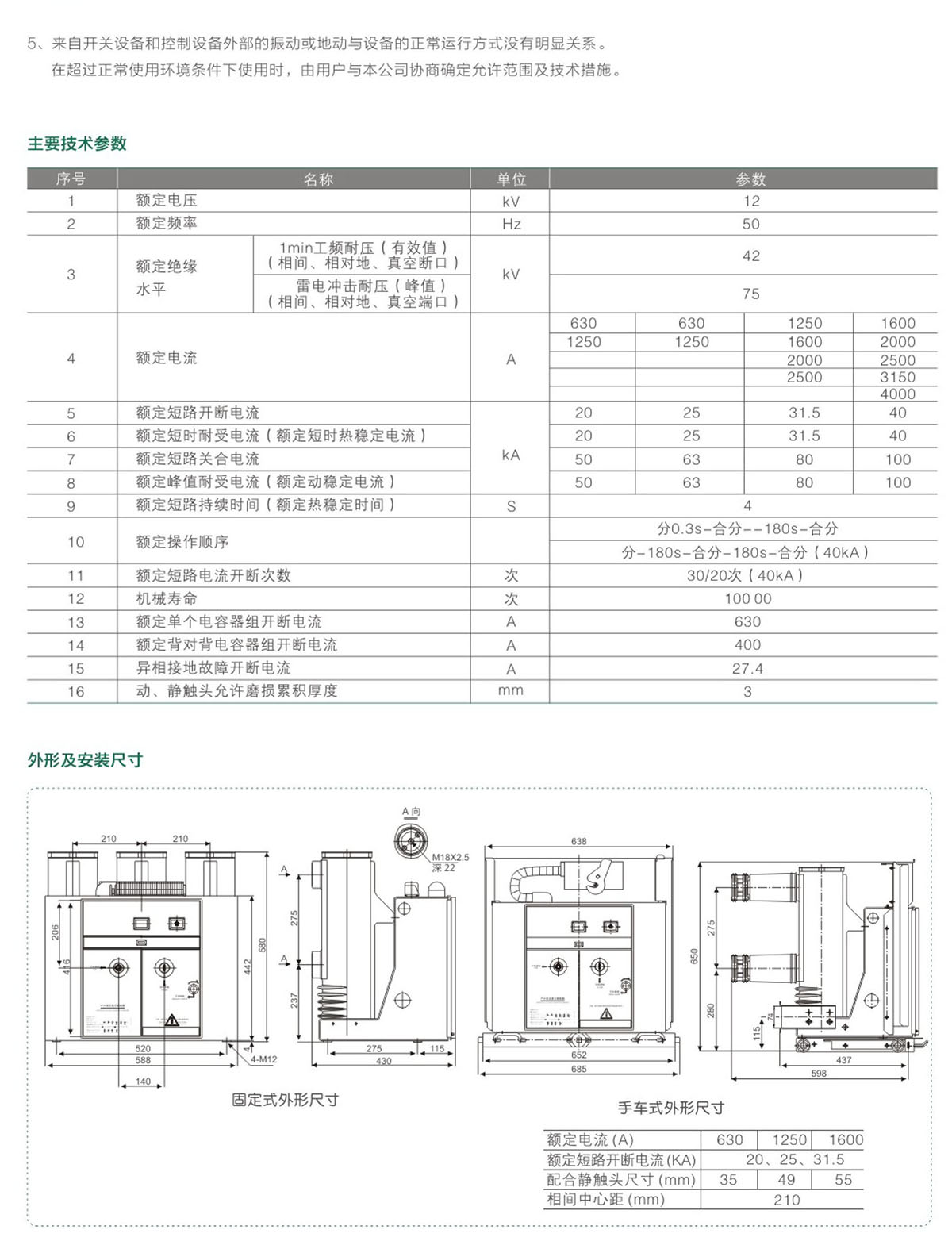 VS1-12固定式真空断路器